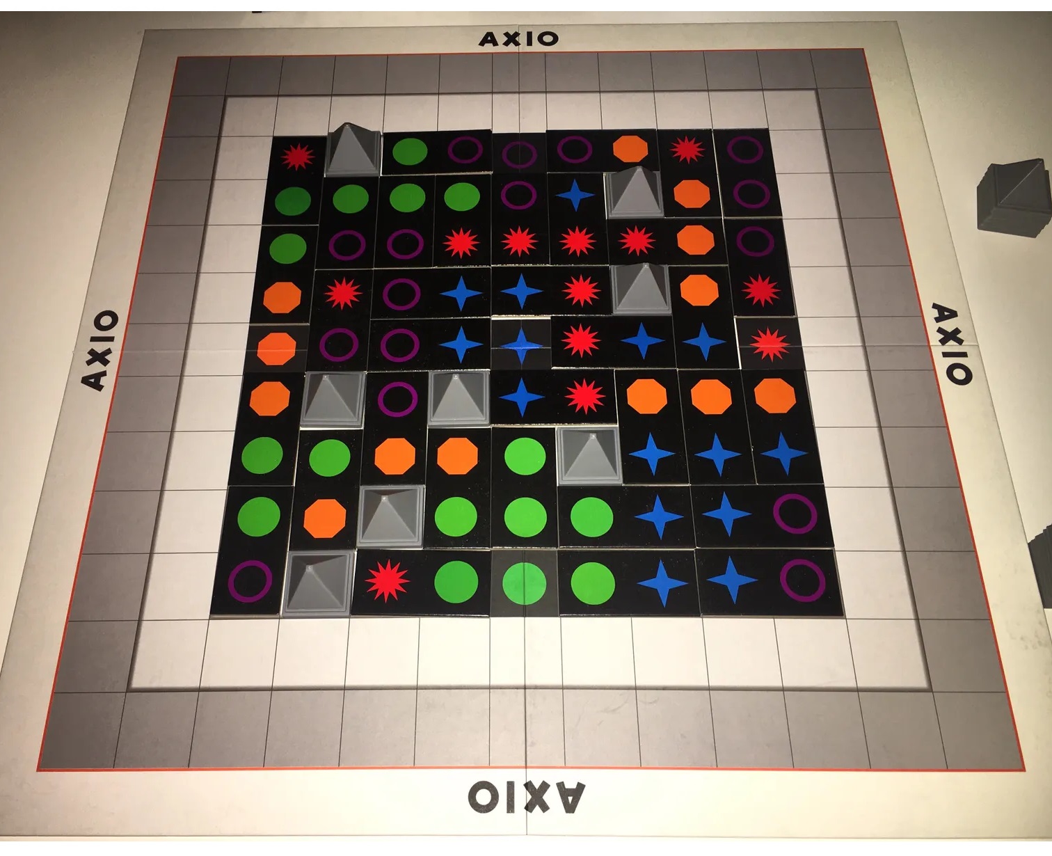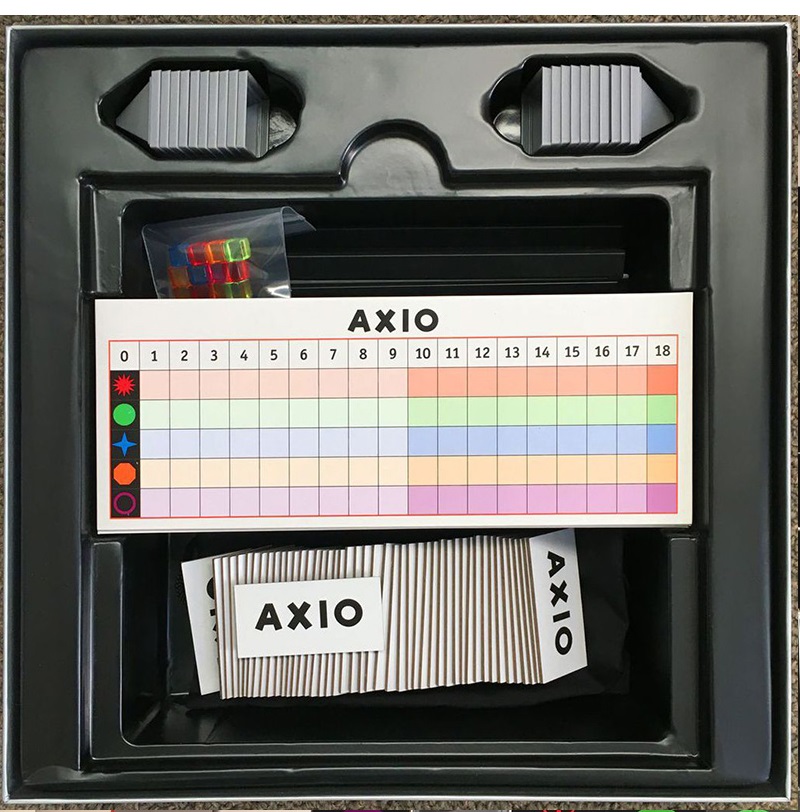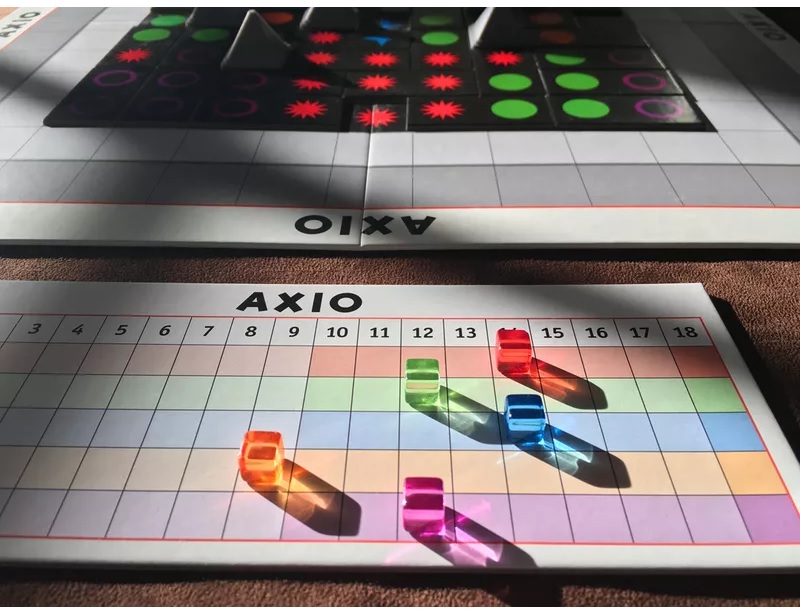 Axio es un elegante juego abstracto creado por el famoso diseñador Reiner Knizia, donde la estrategia y la visión a futuro son tus mejores aliados. Con reglas sencillas pero profundas, cada jugador debe colocar fichas con símbolos de colores en el tablero, buscando crear combinaciones que sumen puntos en múltiples direcciones al mismo tiempo. ¡La clave está en pensar de manera táctica y aprovechar cada movimiento para avanzar en todos los colores!