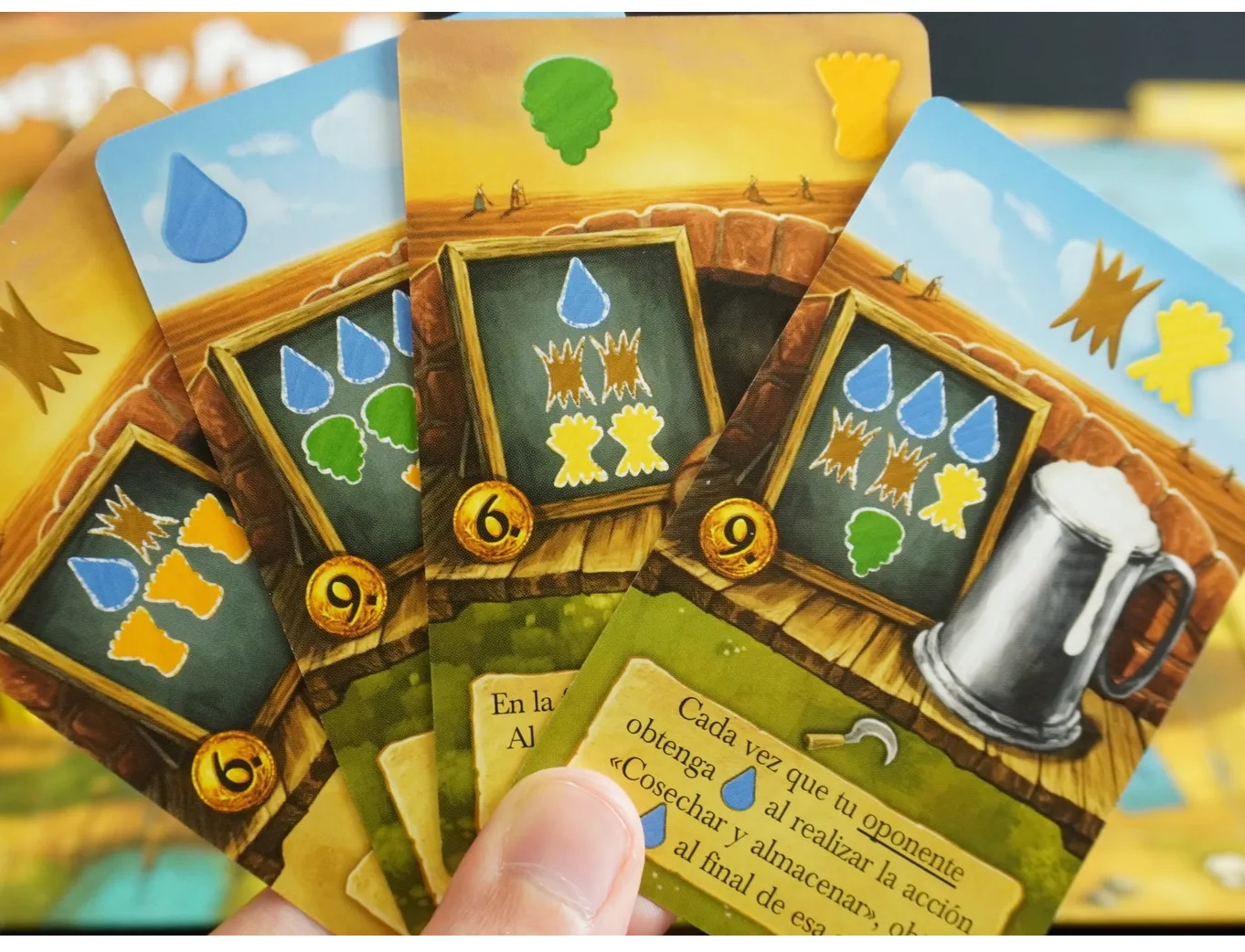Cada turno es una decisión estratégica: compartir cartas con tu rival, gestionar tu cosecha, mejorar tus edificios y aprovechar las temporadas buenas… porque en las malas todo se complica. La clave está en saber cuándo producir y cuándo vender, sin malgastar ni un grano.