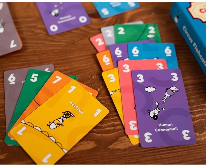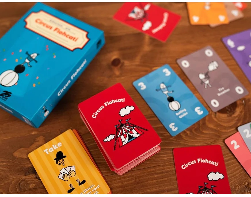 Si en tu turno tienes tres cartas del mismo valor en la mano, puedes jugar este trío sobre la mesa para obtener 10 puntos garantizados. El juego termina cuando alguien revela que tiene los diez actos en la mano o cuando se agota el mazo. Sólo se puntúa por el acto de mayor valor de cada color, así que evita coger colores duplicados o deshazte de ellos en tríos. Si tienes los diez actos en la mano, obtienes una bonificación de 10 puntos por el «espectáculo de gala». El que tenga la puntuación más alta gana.