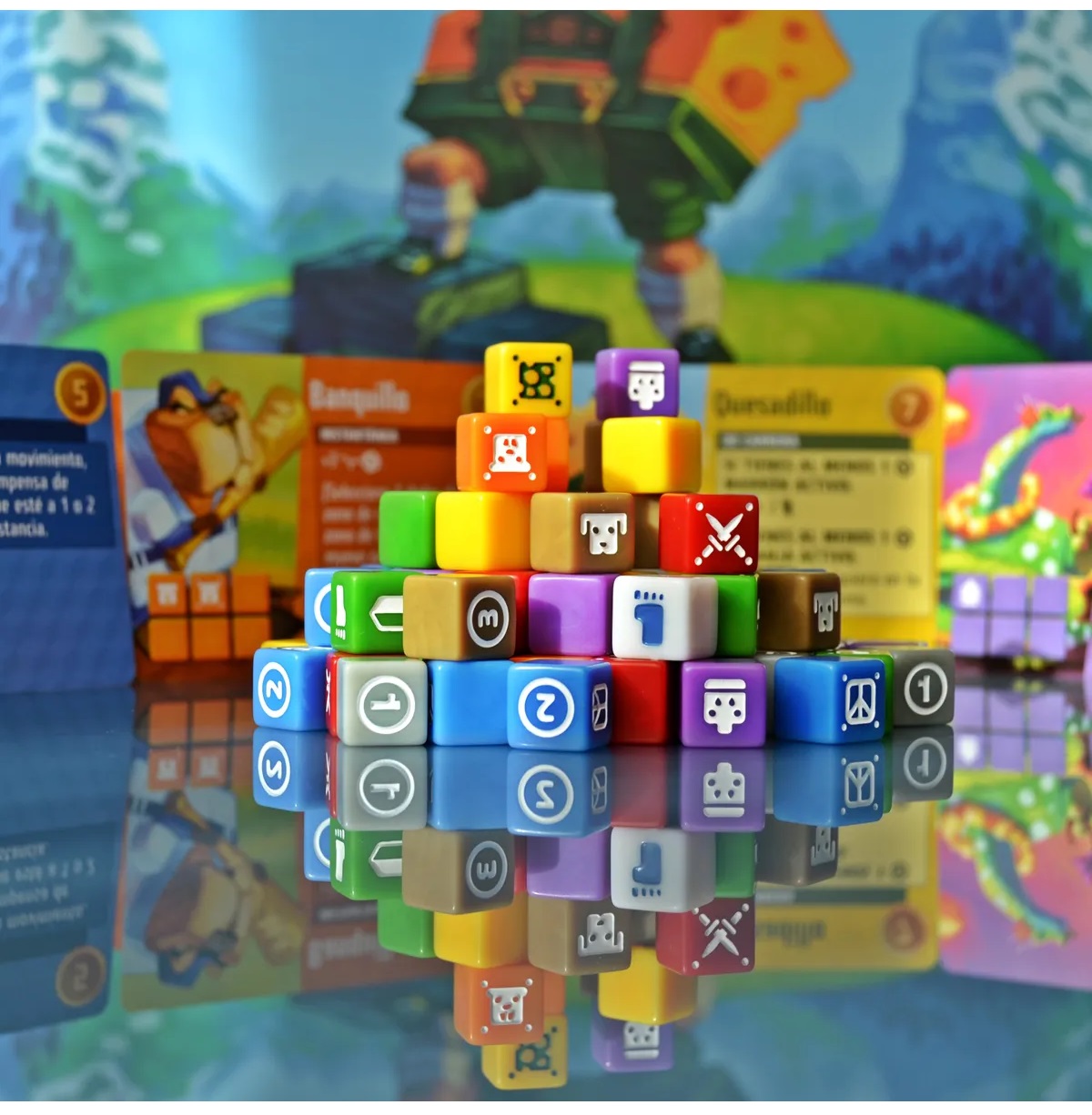 Cubitos es un mundo en forma de cubo en el que habitan pequeñas criaturas cúbicas. Cada año, la población de Cubitos se reúne para celebrar la Copa Cubo, una carrera de estrategia y suerte para nombrar al Campeón de Cubitos. Cada participante tiene un corredor, representado por un personaje en la pista de carreras, y un equipo de apoyo, representado por todos los dados que lances.