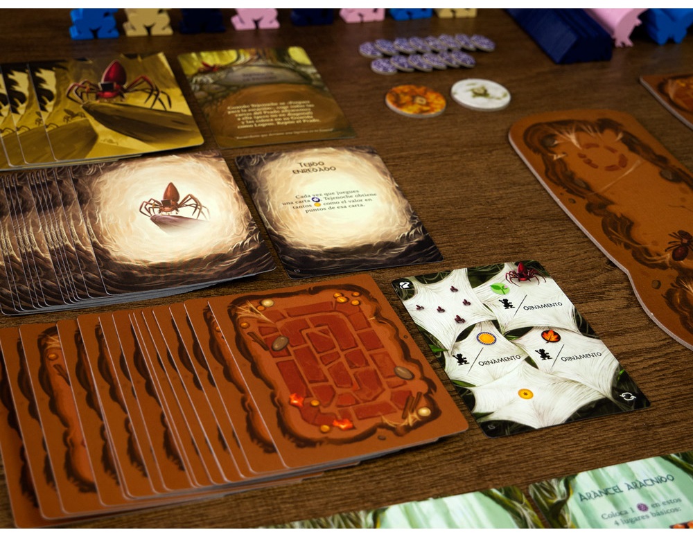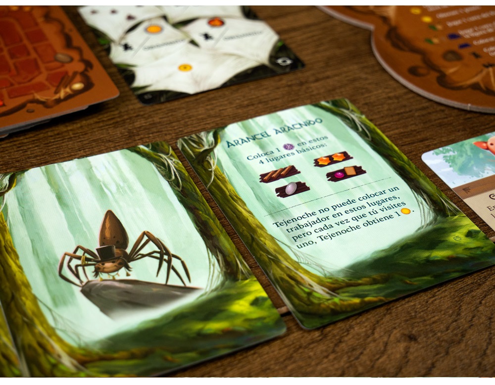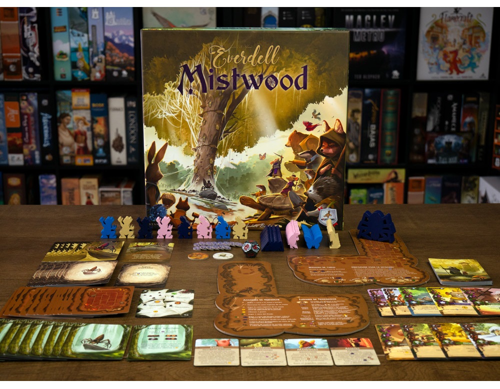 Mistwood introduce una amenaza oscura en el tranquilo valle de Everdell. En esta expansión, los jugadores se enfrentan a Nightweave, una astuta araña que invade el bosque y cambia por completo el ritmo del juego, añadiendo un emocionante modo en solitario o cooperativo.
