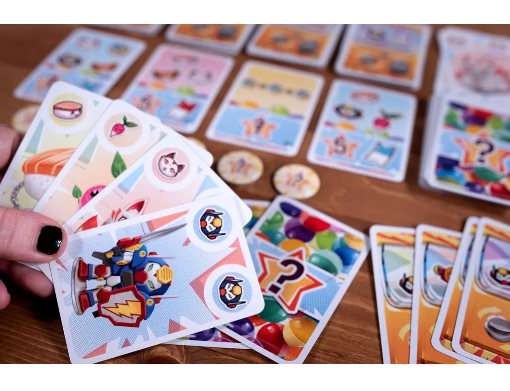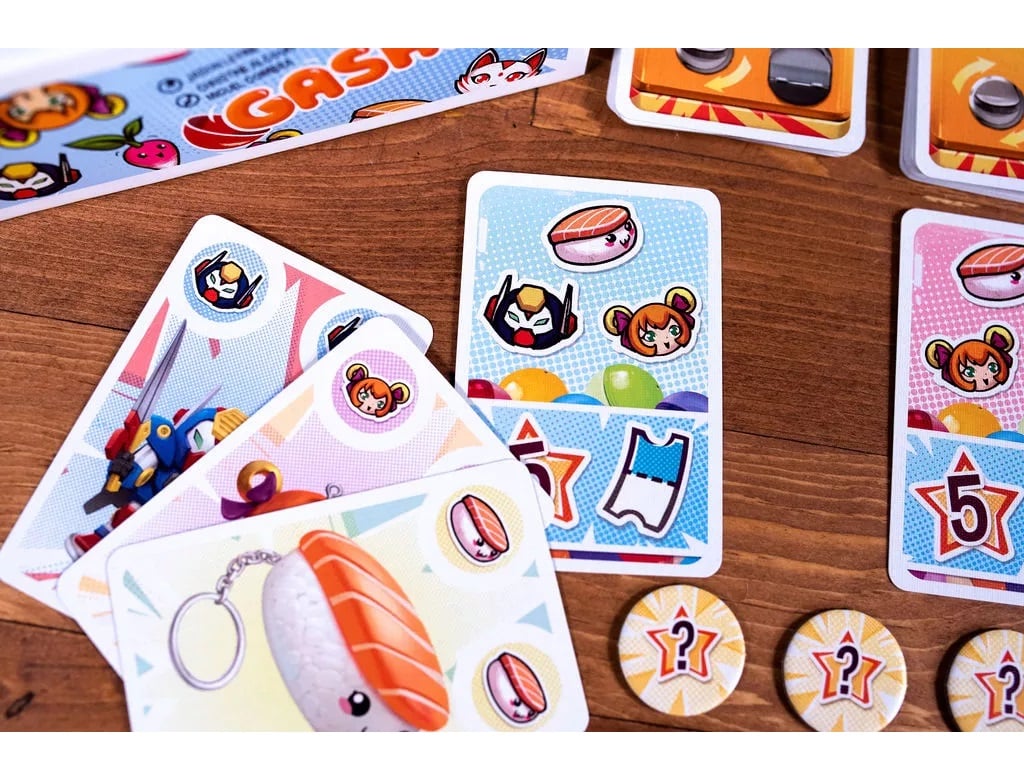 En tu turno en Gasha, robas dos cartas Gasha o las intercambias por una carta de recompensa del set, que cuenta como puntos y también es la mitad de un boleto.