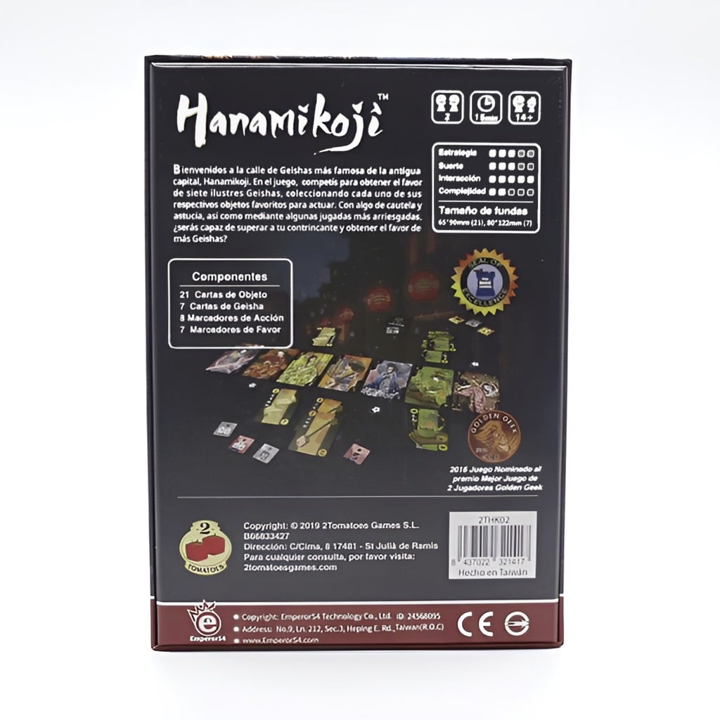 En Hanamikoji, dos jugadores compiten para ganarse el favor de siete ilustres Geishas recogiendo el objeto de actuación preferido de cada Geisha. Con algo de cautela y astucia, ¿Serás capas de superar a tu contrincante para ganarte el favor de la mayoría de las Geishas?