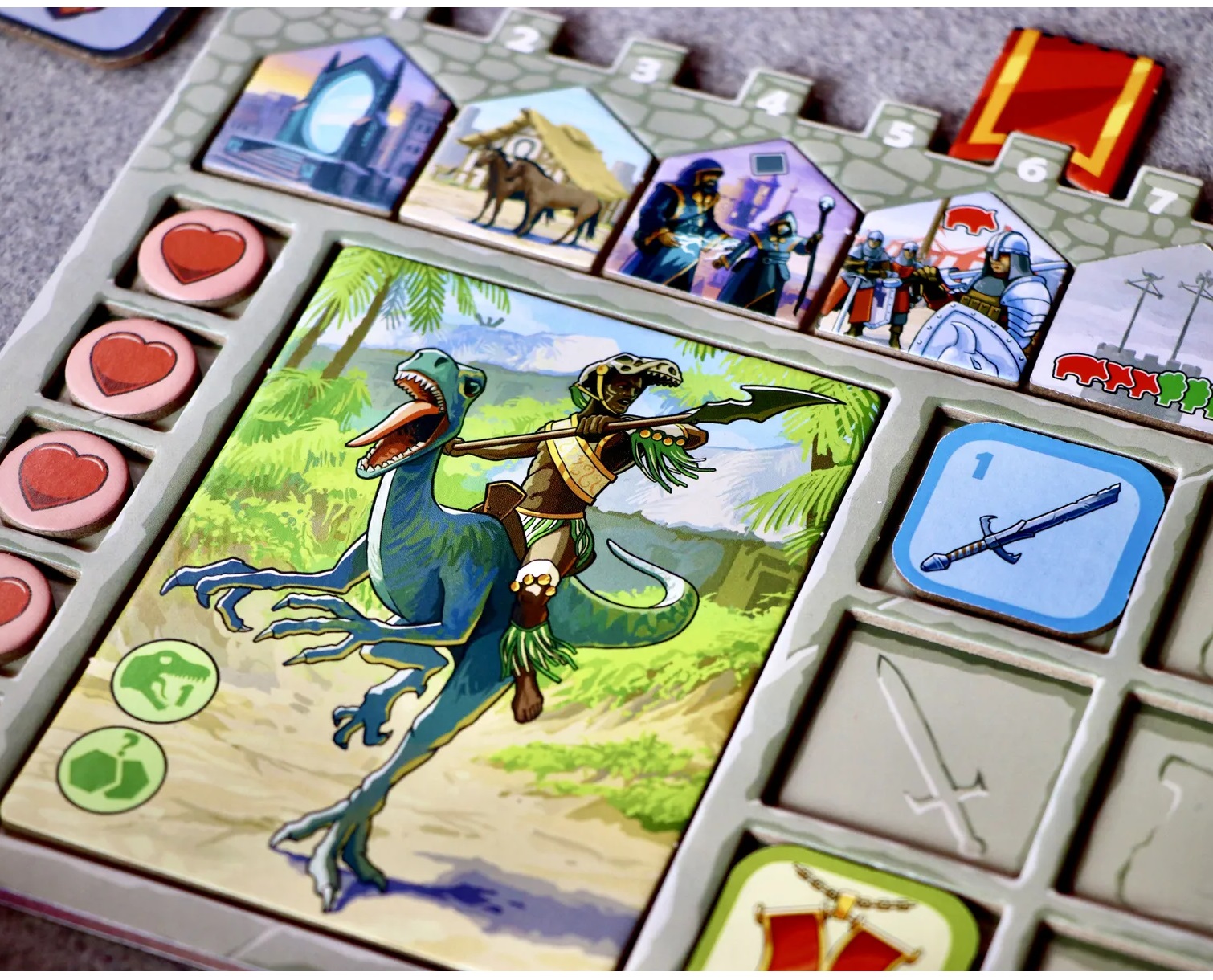 Karak 2 es la evolución “más grande y épica” de Karak: en vez de quedarte solo en la mazmorra, ahora exploras el territorio alrededor del castillo, revelando losetas de paisaje, enfrentando monstruos y ganando recompensas mientras tu héroe se hace más fuerte. Es una aventura competitiva donde cada turno se siente como “exploro un poco más… pero me la puedo jugar”.