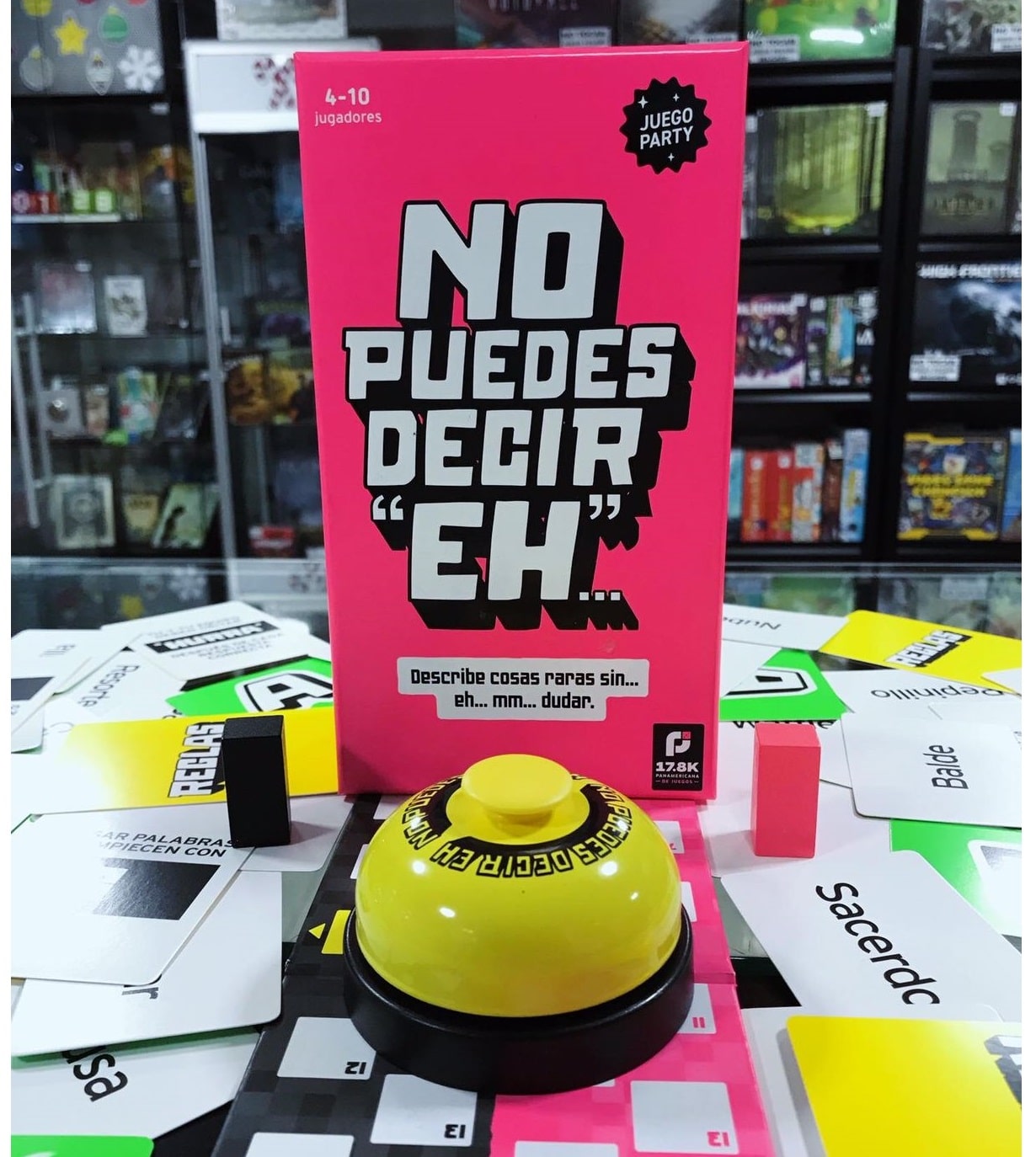 No Puedes Decir “Eh” es el juego de fiesta que pone a prueba tu agilidad mental, tu vocabulario y tu capacidad para hablar bajo presión. Los jugadores deben responder preguntas, improvisar conversaciones y reaccionar rápidamente… todo sin decir la palabra prohibida.