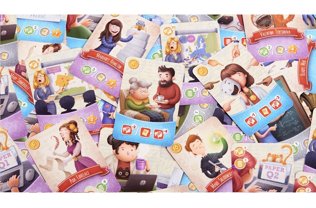 Durante la partida, los jugadores usarán los recursos generados por sus cartas para pagar el coste de las cartas disponibles en el conjunto común. De esta forma, se añadirán becas de investigación, equipo de laboratorio, investigadores, científicos e inventores a su mazo individual. Turno a turno, los jugadores ampliarán y mejorarán su equipo de investigación.