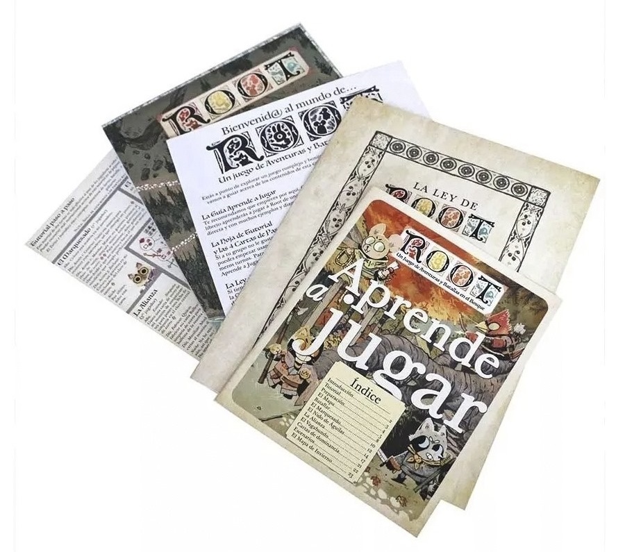 Root es un juego de poder y derecho del bosque. Acecha el bosque como uno de los Vagabundos, toma la iniciativa con las aves rapaces del Nido de Águilas, gobierna a tus súbditos como el Marquesado o ordena a la alianza del bosque que cree un nuevo orden. Con criaturas y astucia, gobernarás un fantástico reino del bosque en el mejor juego asimétrico, de aventuras y guerra.