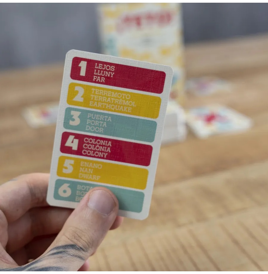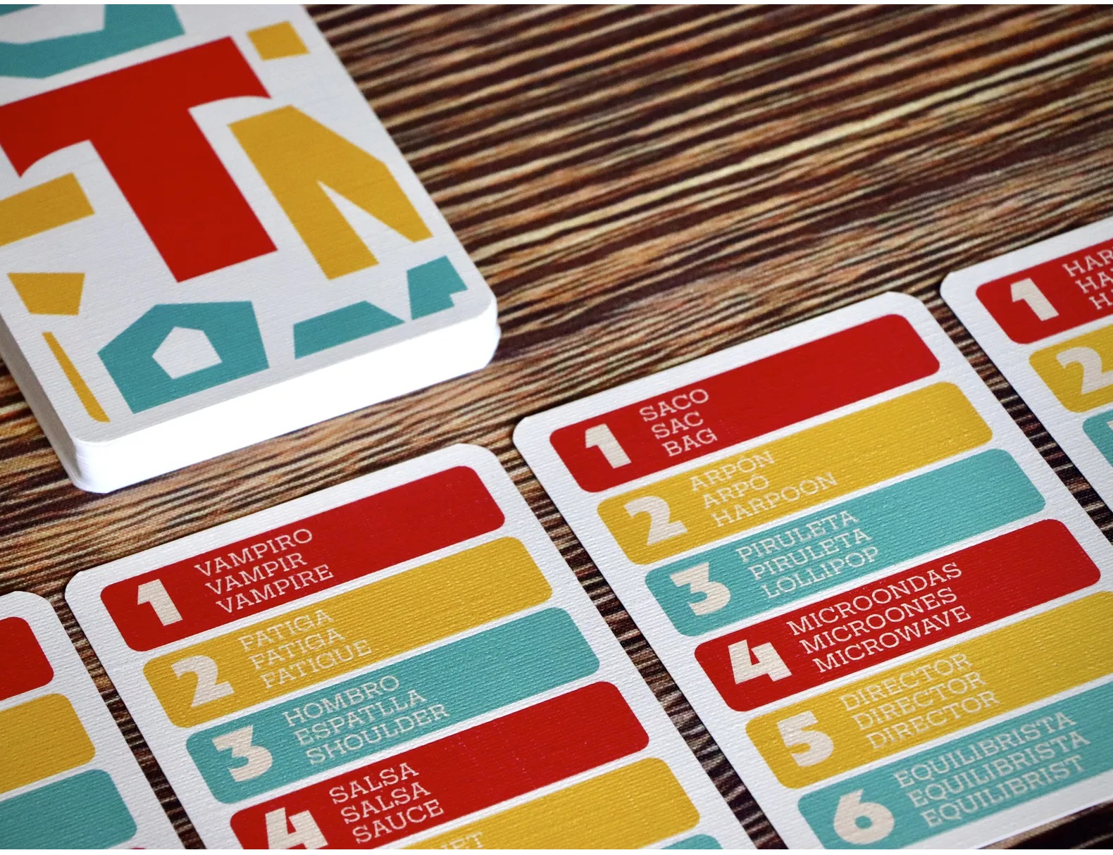 Es un party game por equipos donde lo más divertido es que vas a decir cosas absurdas… y tu equipo debe entenderte. La meta es simple: descifrar todas las palabras de tus cartas antes que el equipo contrario, pero para lograrlo tendrás que comunicarte como si hablaras “en clave” y con mucha mímica.