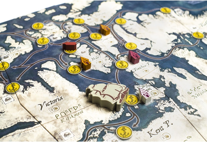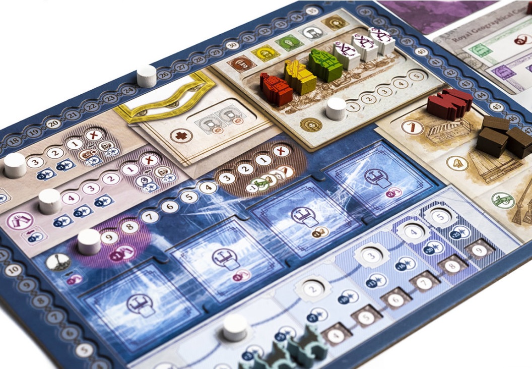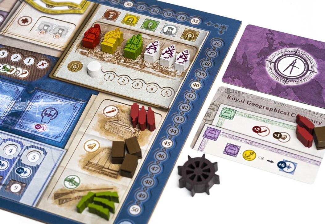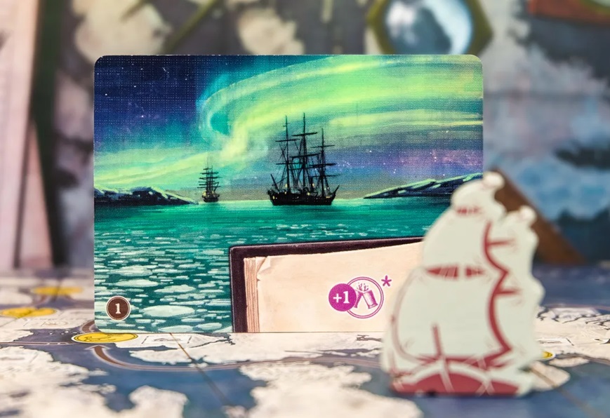 A medida que avance la expedición, se revelarán nuevas piezas de mapa y rutas que se añadirán al tablero modular. Cada jugador está al mando de su propio barco, y las tripulaciones incluyen tres oficiales con habilidades individuales:
