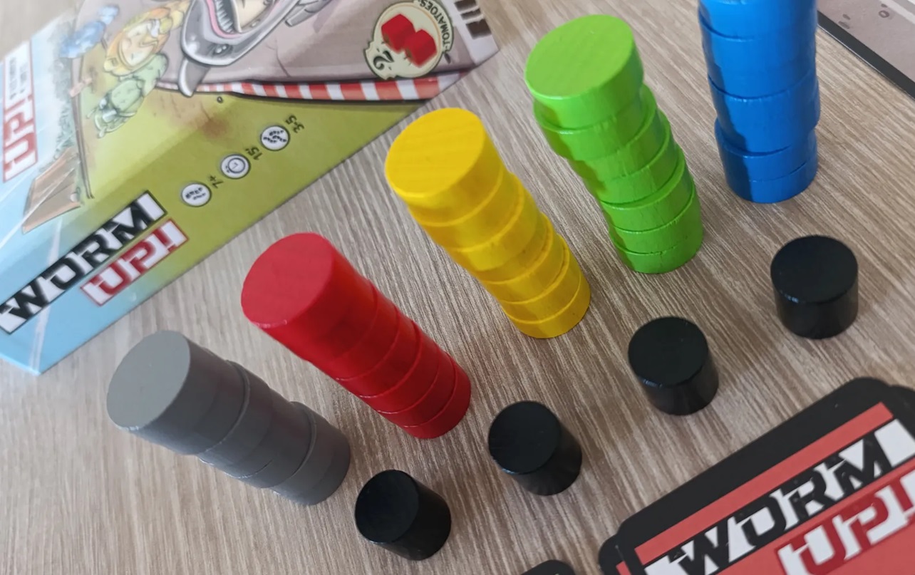 En este divertido juego, cada jugador controla un gusano formado por varios discos alineados. Un turno consiste en que cada jugador elige en secreto cuánto quiere que mueve su gusano.